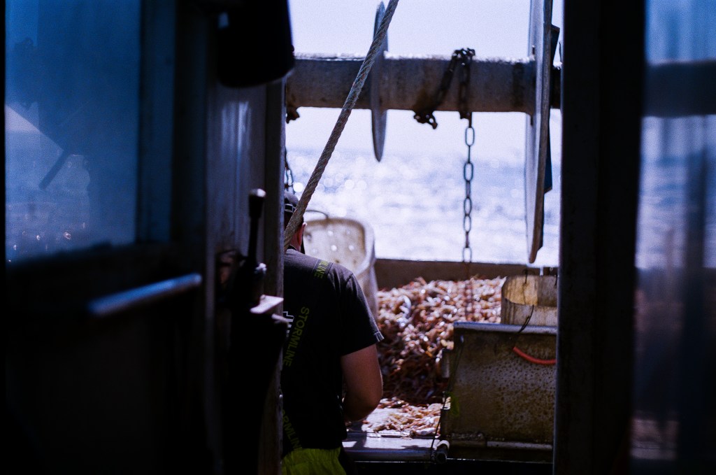 « Les langoustines sont capricieuses. S’il y a de la houle, elles ne sortent pas » lance Kevin en remontant de la cale. Le capitaine reprend la barre à son matelot qui se dirige vers l’arrière du bateau de 15 mètres. Six heures : il est temps de descendre les deux chaluts à la mer pour la première pêche de la journée. Le matelot accompagne d’un geste assuré la bonne coulée des 400 mètres de câbles, chaînes et filets lestés par de gros panneaux en fonte. L’attente commence à bord du Roxy qui maintient une allure soutenue vers la haute mer. C’est au tour de Pacou d’aller se reposer.