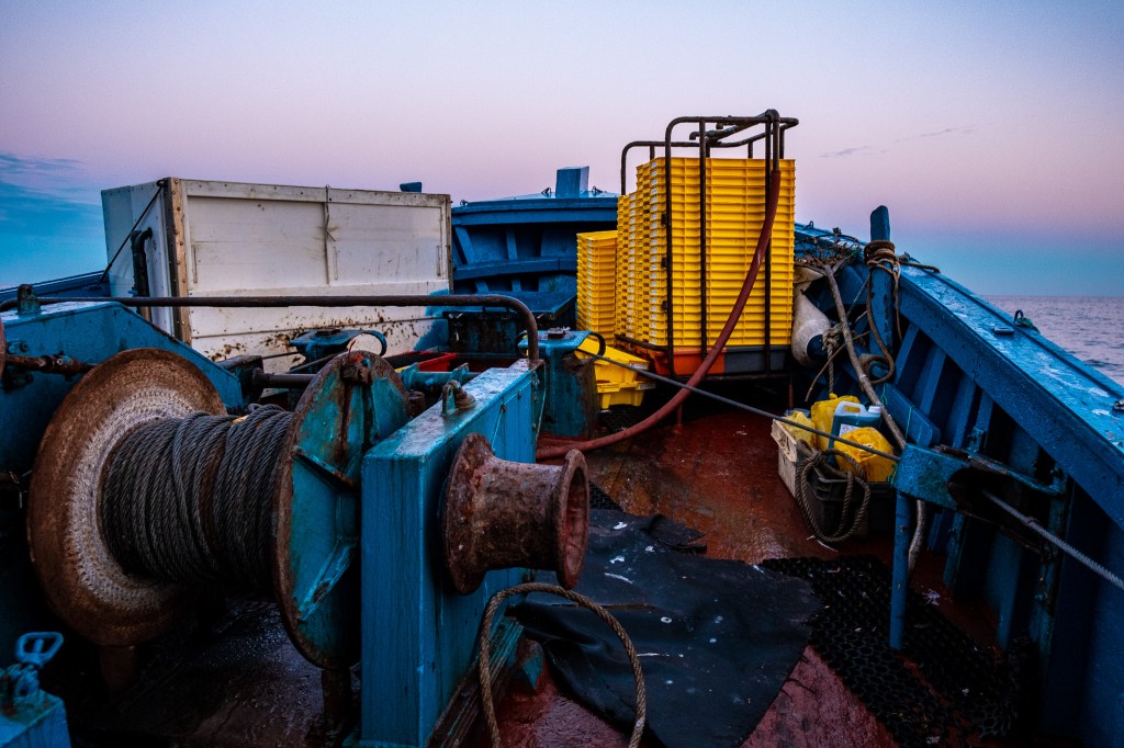 La journée passée au large des côtes suit le même rituel. Une régularité qui contraste avec le prix variable et la quantité incertaine des crustacés pêchés. « Il y a de l’attente jusqu’à la remontée du premier filet, à moins que l’on ait déchiré. Généralement c’est assez calme. Mais après, tu vas voir… Hier, on a dû stopper pour manger sinon on n’aurait pas eu le temps. »