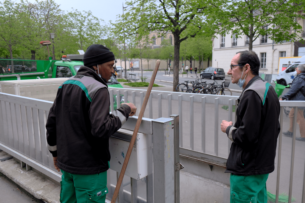 « Il est 5 heures, Paris s’éveille. » Dans la ville déserte, le jour n’est pas encore levé. Près de la place Denfert-Rochereau (14e), les éboueurs arrivent les uns à la suite des autres à l’atelier souterrain. Les hommes et les quelques femmes s’engouffrent dans le local technique pour se changer. « Salut Boubou ! » Le responsable nous accueille en saluant les premiers équipiers en tenue, prêts pour le service du matin qui commence à 6 heures.